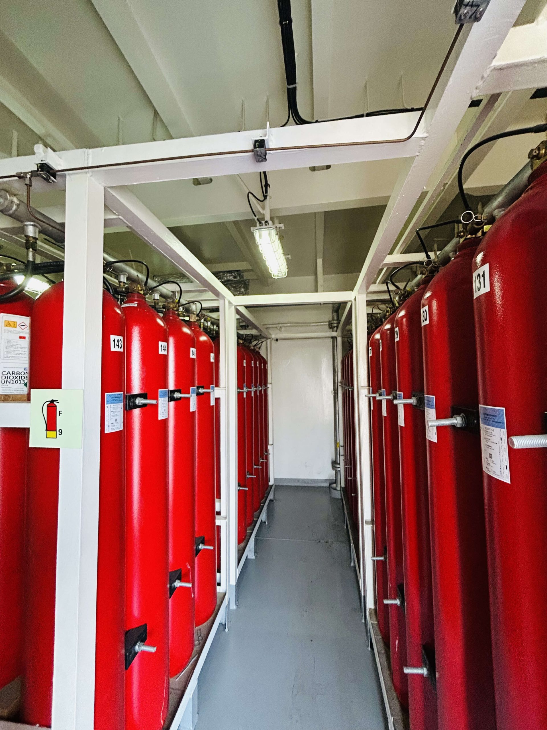 Testing & servicing of fixed fire suppression systems for engine room & cargo areas.